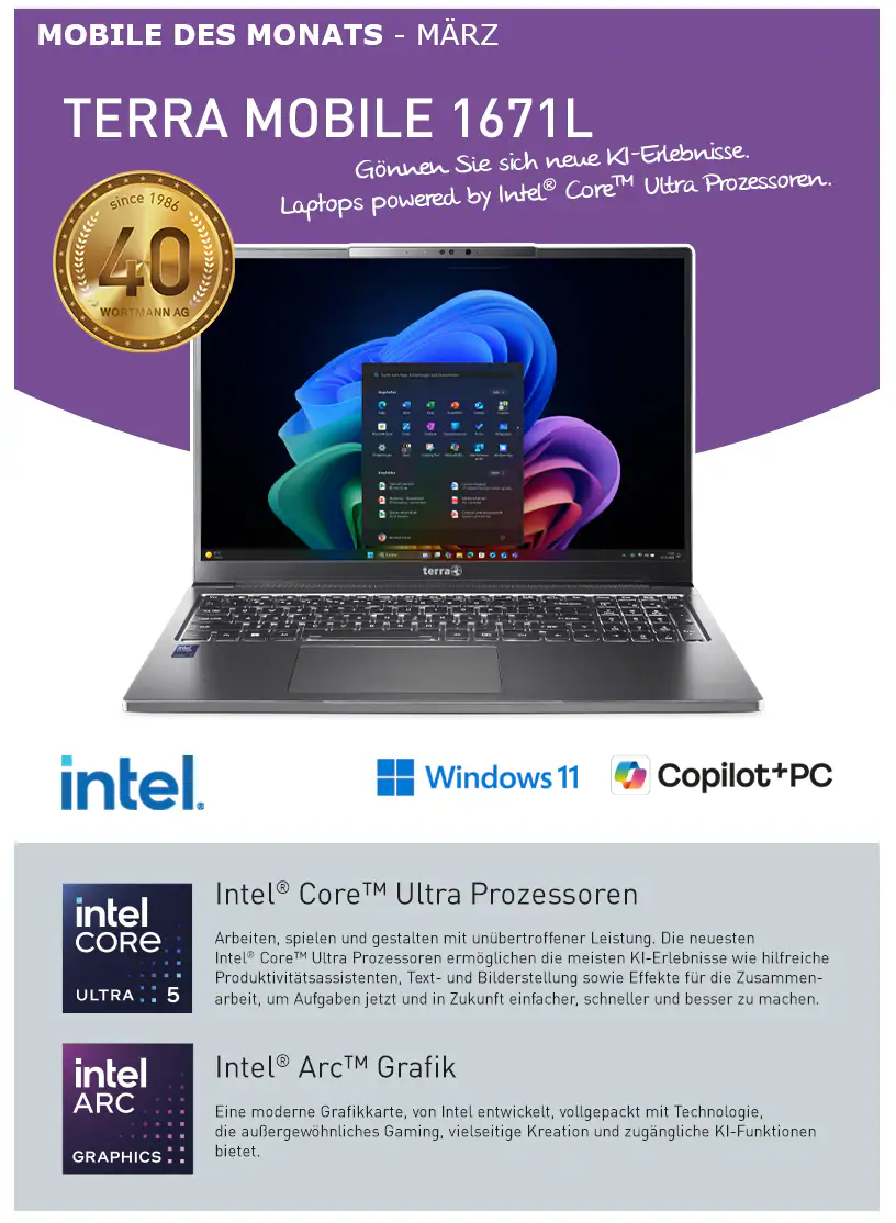 • Intel® Core™ Ultra 5 Prozessor 228V (8 MB Cache, bis zu 4.5 GHz) • Windows 11 Pro Copilot+ PC • Displaygröße 40.64 cm (16″) • 2560 x 1600 Pixel, Non Glare Display • Intel® Arc™ 130V GPU Artikelnr.: 1220867